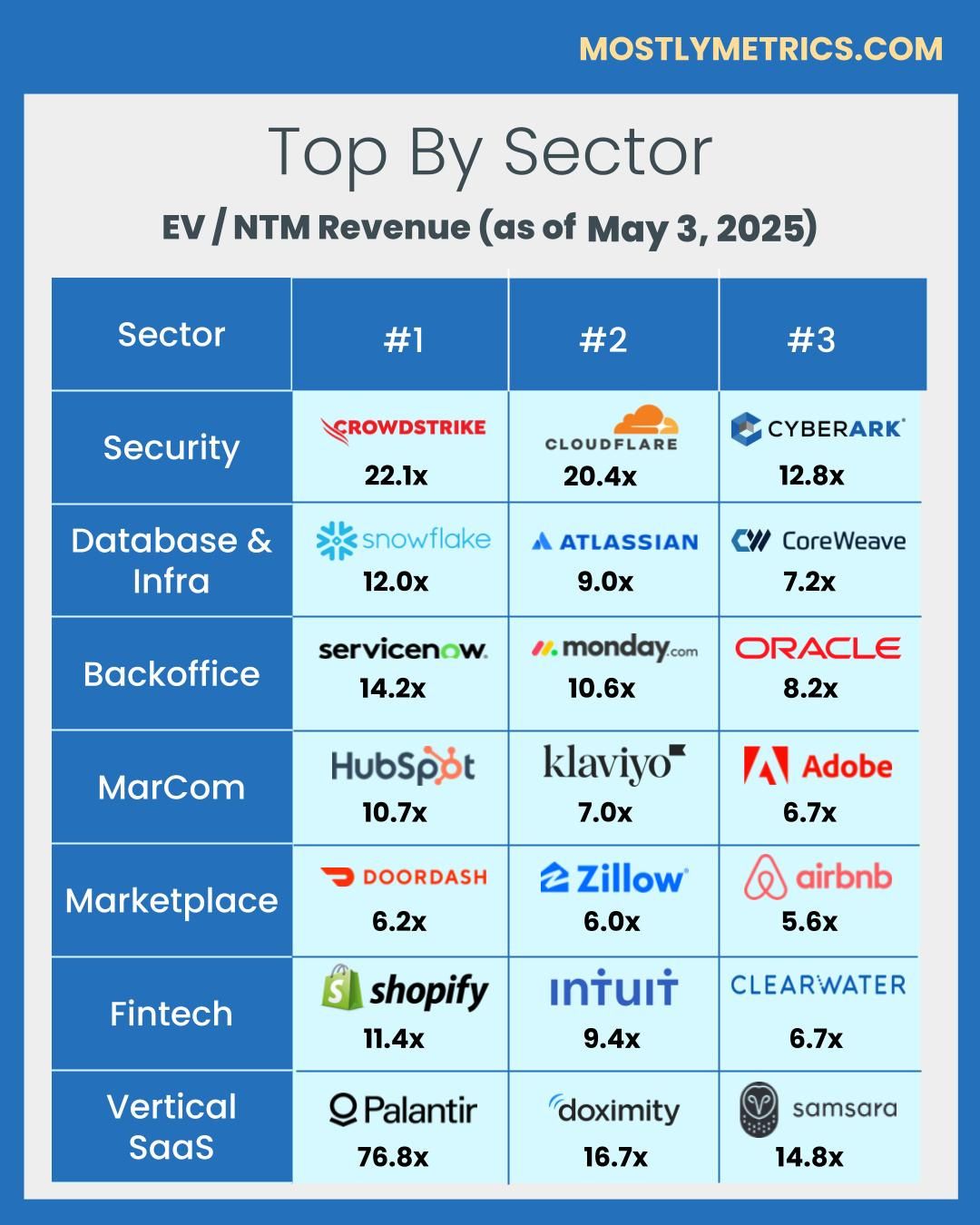 Multiples shown are calculated by taking the Enterprise Value / NTM revenue.