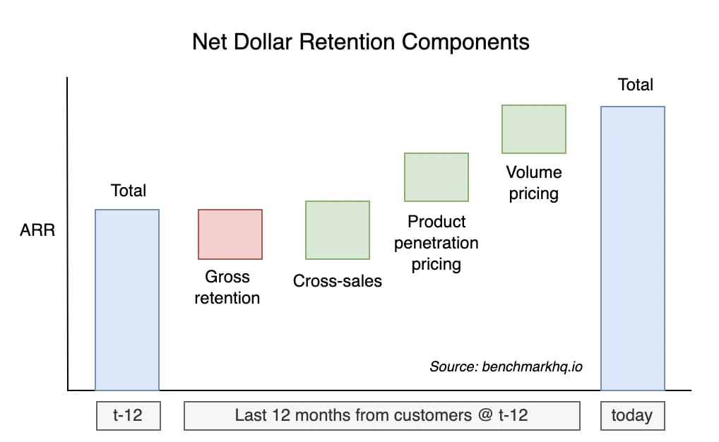 Net Retention is a way to build “free” growth into your sales motion. I say that partly in jest, because you still need to treat your customers right and make sure they are implementing your services to get max value (which does cost something). All in all, the easiest path to growth is to not lose the customers you already have, and then make them more successful. That way you don’t have to “make it up in volume”.