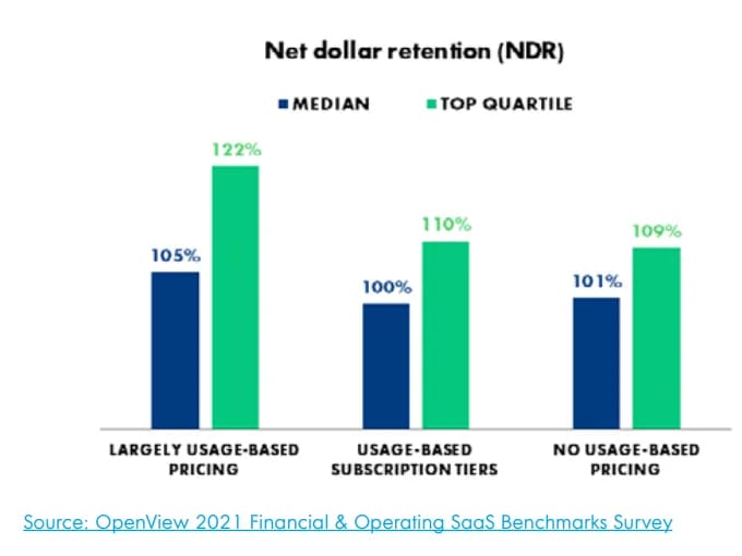 If I were to rank which business models are best geared to benefit from net retention, Usage based models would take the cake. Once you have the customer signed up, all they have to do is keep using the product. The skids are greased.
