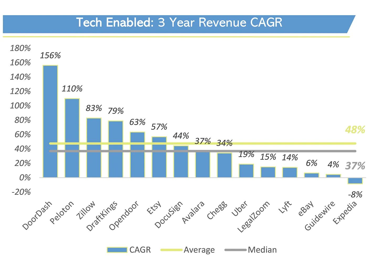 A few obvious Tech Enabled companies like WeWork, GrubHub, and Vroom didn’t make the cut because they aren’t in the ol’ Russel 1K (sad face)
