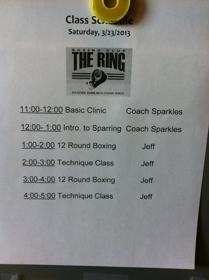 Quick detour - one night I changed the song from his favorite playlist while he was teaching a class (I believe it was Ruff Riders Anthem by DMX). He bookmarked that perceived slight for Saturday sparring. A few days later he trapped me in the corner and calmly whispered through his mouthpiece, “Don’t ever touch my music mother fucker,” dropping me with a liver shot.