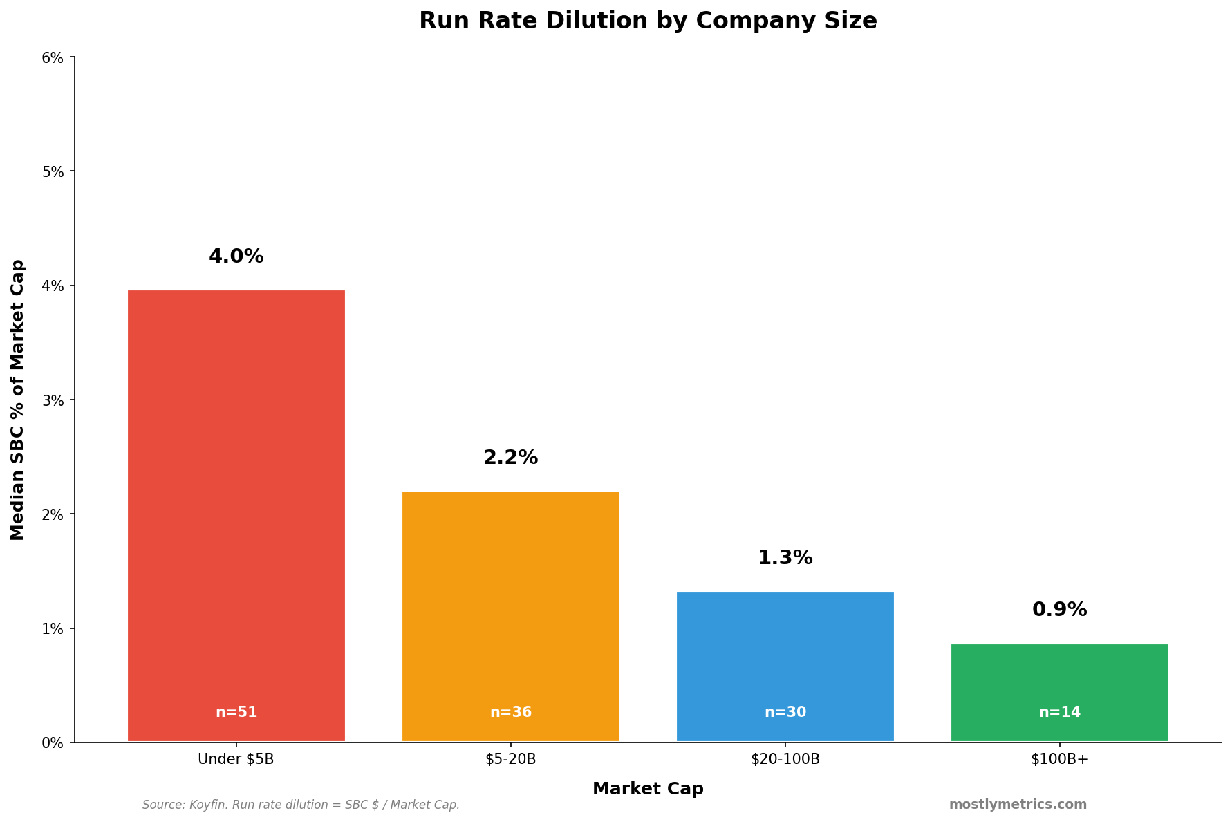 Private company CFOs: same math applies. You just can't see it as clearly because 1) your equity is priced off a stale round, not a daily market, and 2) the majority of your dilution is still from raising chunky primary rounds. The impact of SBC feels small compared to giving away 10% in your Series D.