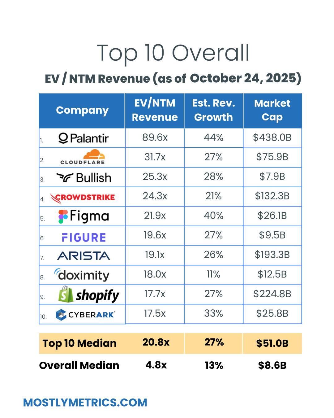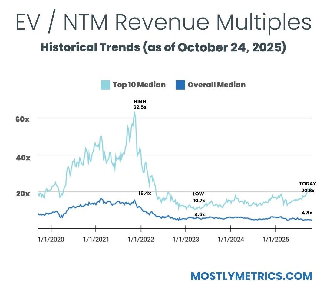 Historically, a 10x NTM Revenue multiple has been viewed as a “premium” valuation reserved for the best of the best companies.