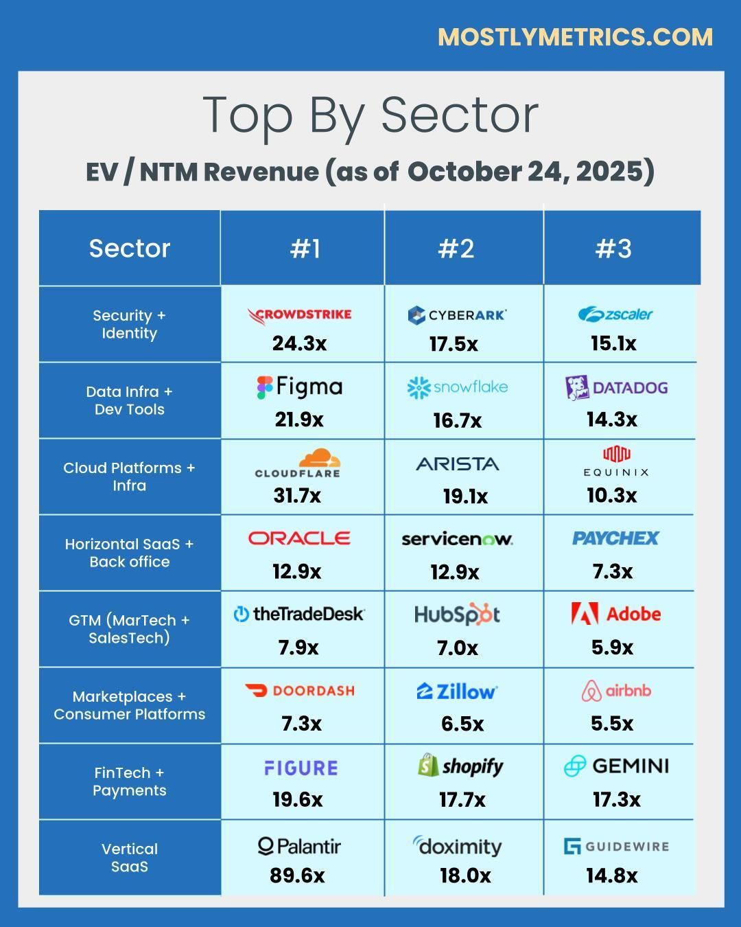 But their infra heavy business model is the exception, not the norm. The majority of the leaders are marketplaces (ABNB, STUB, UBER, UPWK, ETSY, CART) and fintechs (XYZ, COIN, AFRM, PYPL, SHOP). Infra, Security, and enterprise SaaS companies were few and far between when parsing out the top performers.
