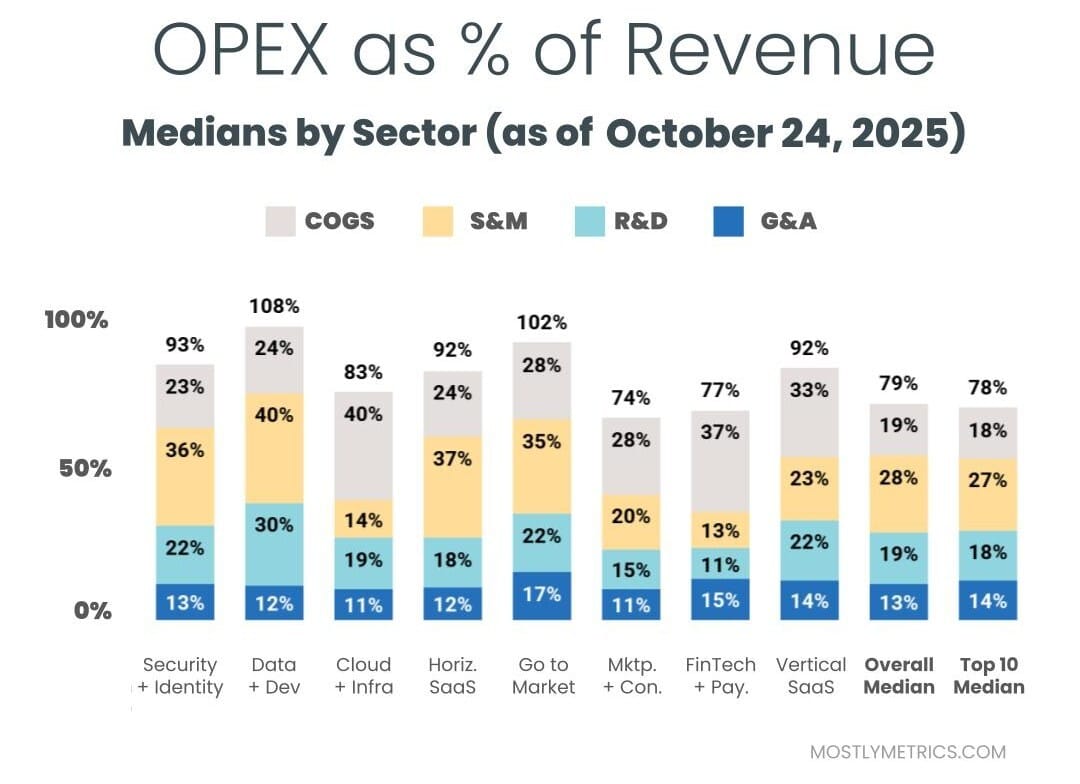 Decreasing your OPEX relative to revenue demonstrates Operating Leverage, and leaves more dollars to drop to the bottom line, as companies strive to achieve +25% profitability at scale.