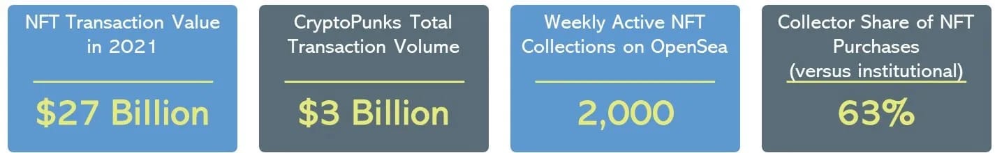 According to Chainalysis, so far in 2021, users have sent at least $26.9 billion worth of cryptocurrency to ERC-721 and ERC-1155 contracts, the two types of Ethereum smart contracts associated with NFT marketplaces and collections