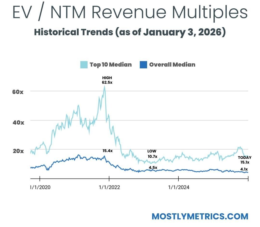 Historically, a 10x NTM Revenue multiple has been viewed as a “premium” valuation reserved for the best of the best companies.