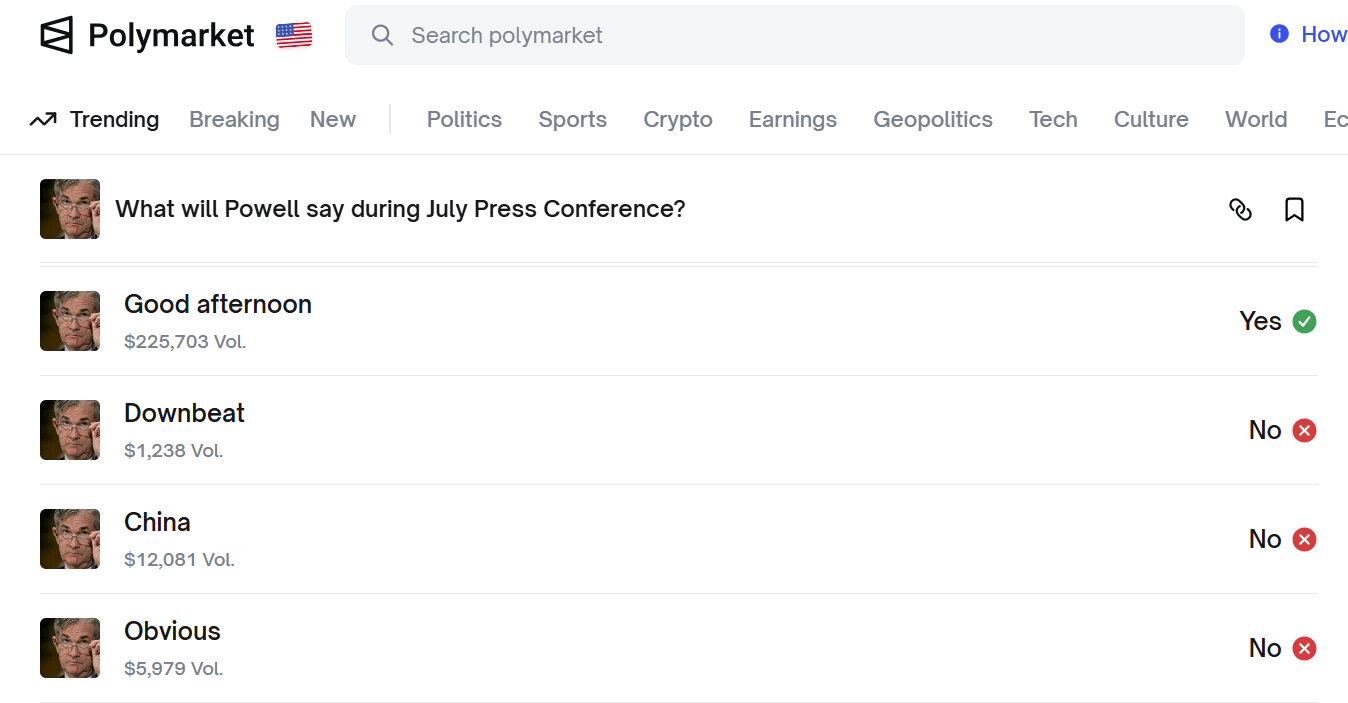 And the lizard brain portion of my head is telling me: dude it’s now legit to bet on anything. Including if Jerome Powell will say “Good Afternoon”.