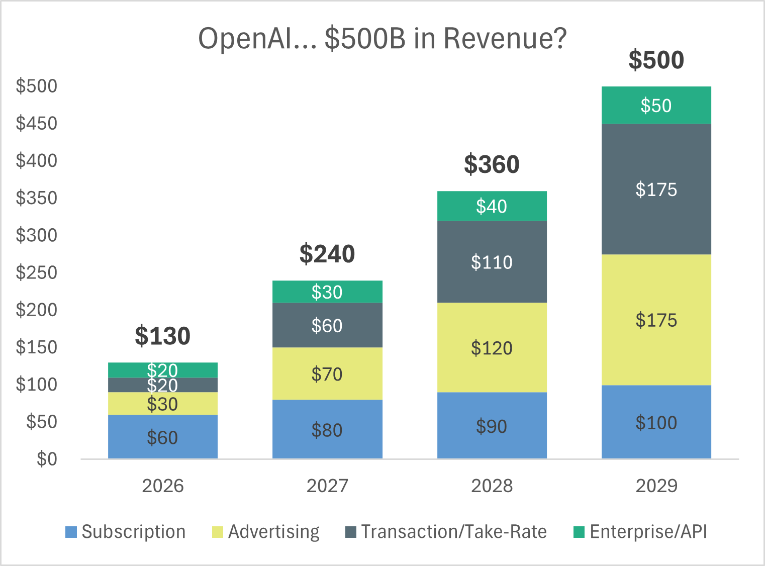 There have been persistent rumors about OpenAI targeting a $1 trillion IPO valuation in the short-ish term. To sustain that valuation (not just at IPO, but long-term), the company needs to show a believable path to revenue and margin levels that rival today’s mega-cap tech firms.