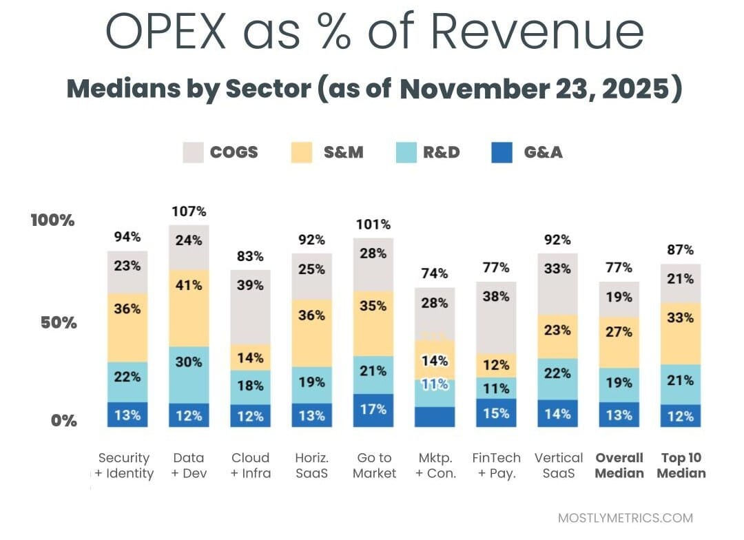 Decreasing your OPEX relative to revenue demonstrates Operating Leverage, and leaves more dollars to drop to the bottom line, as companies strive to achieve +25% profitability at scale.