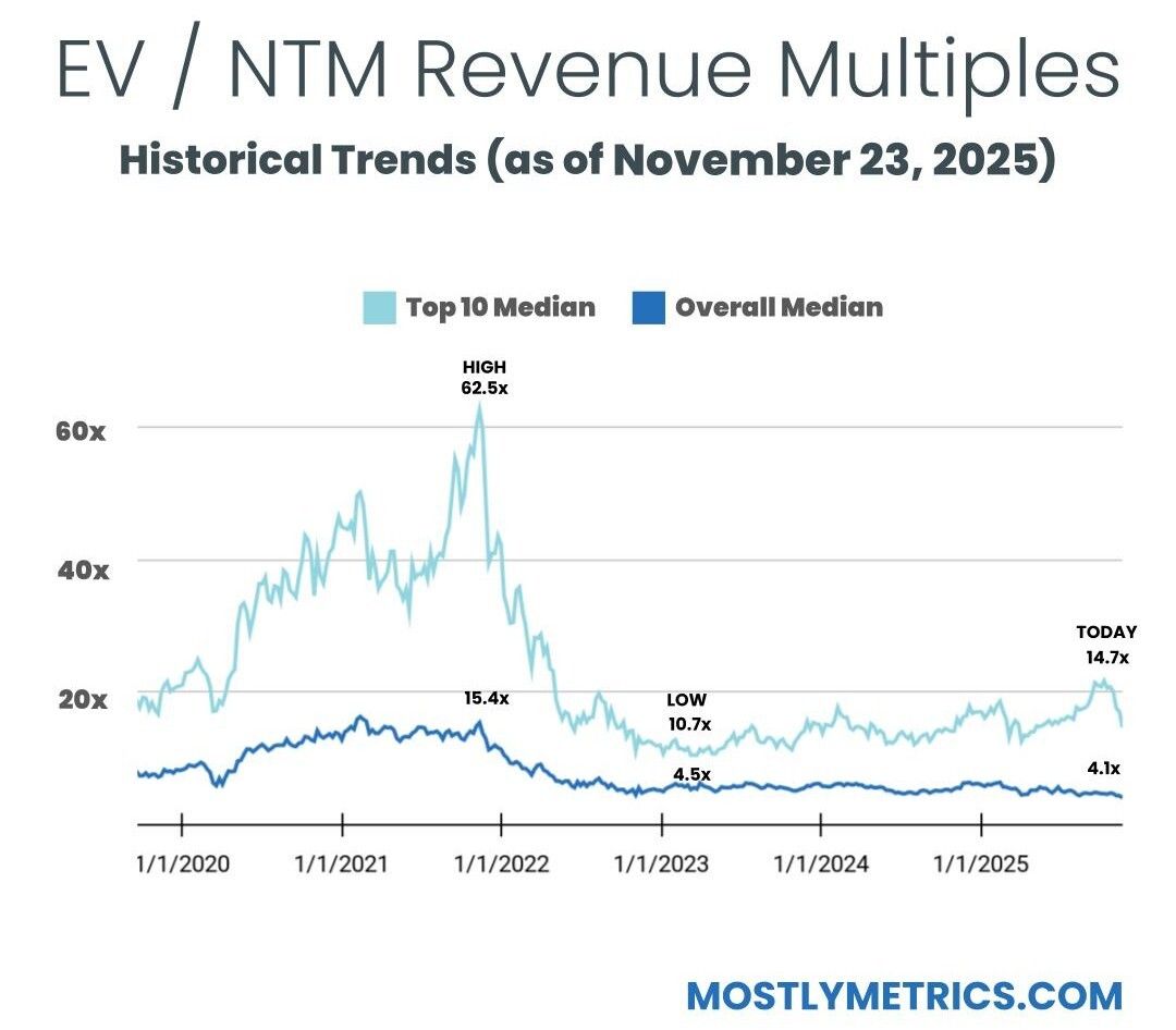 Historically, a 10x NTM Revenue multiple has been viewed as a “premium” valuation reserved for the best of the best companies.